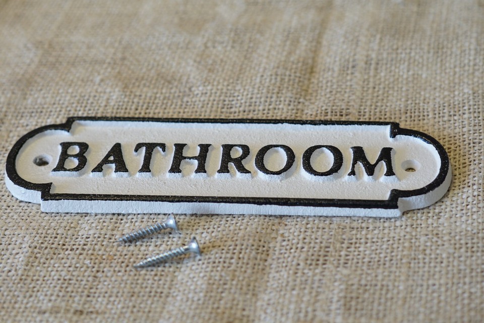 CAST IRON "BATHROOM" SIGN!
