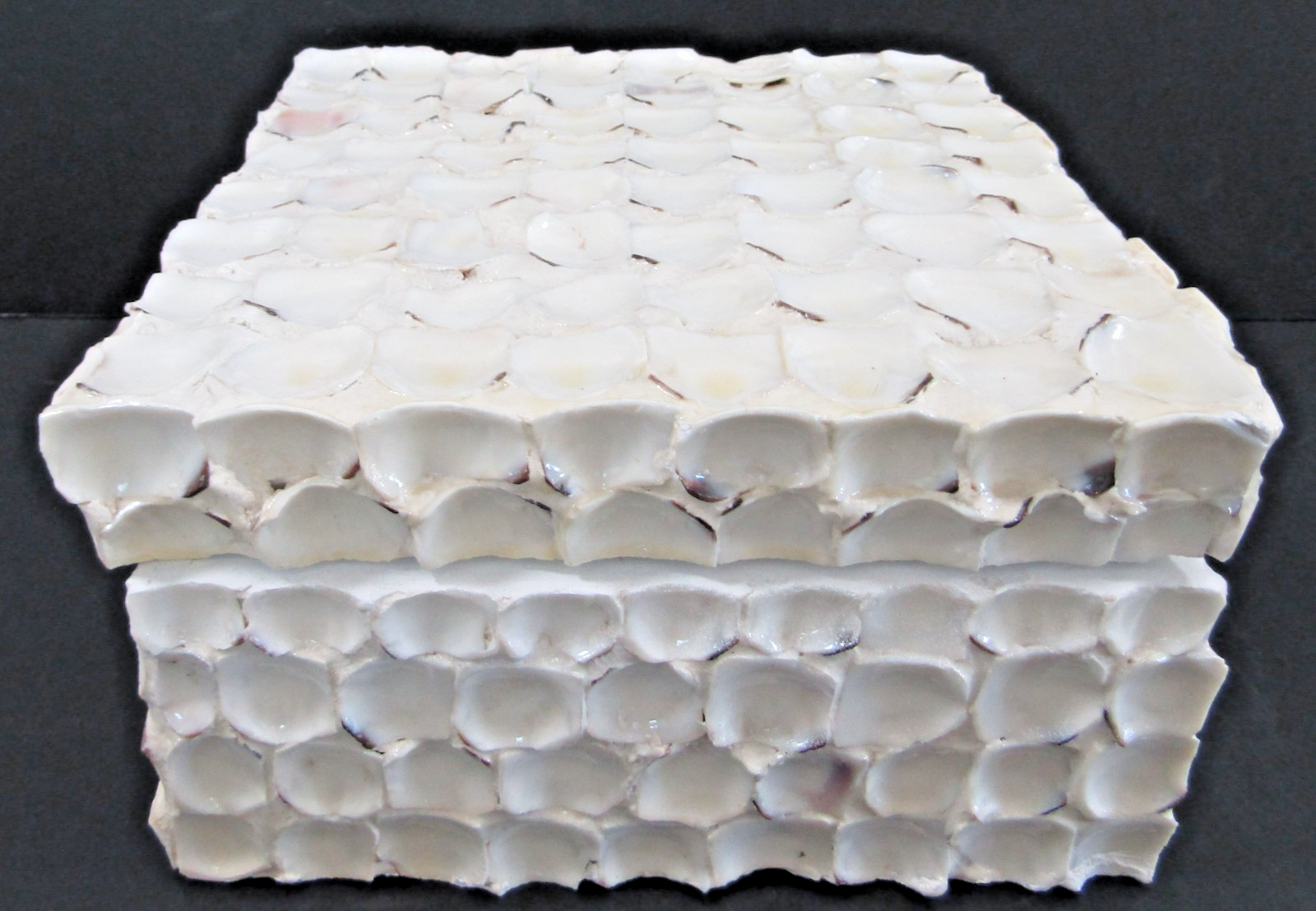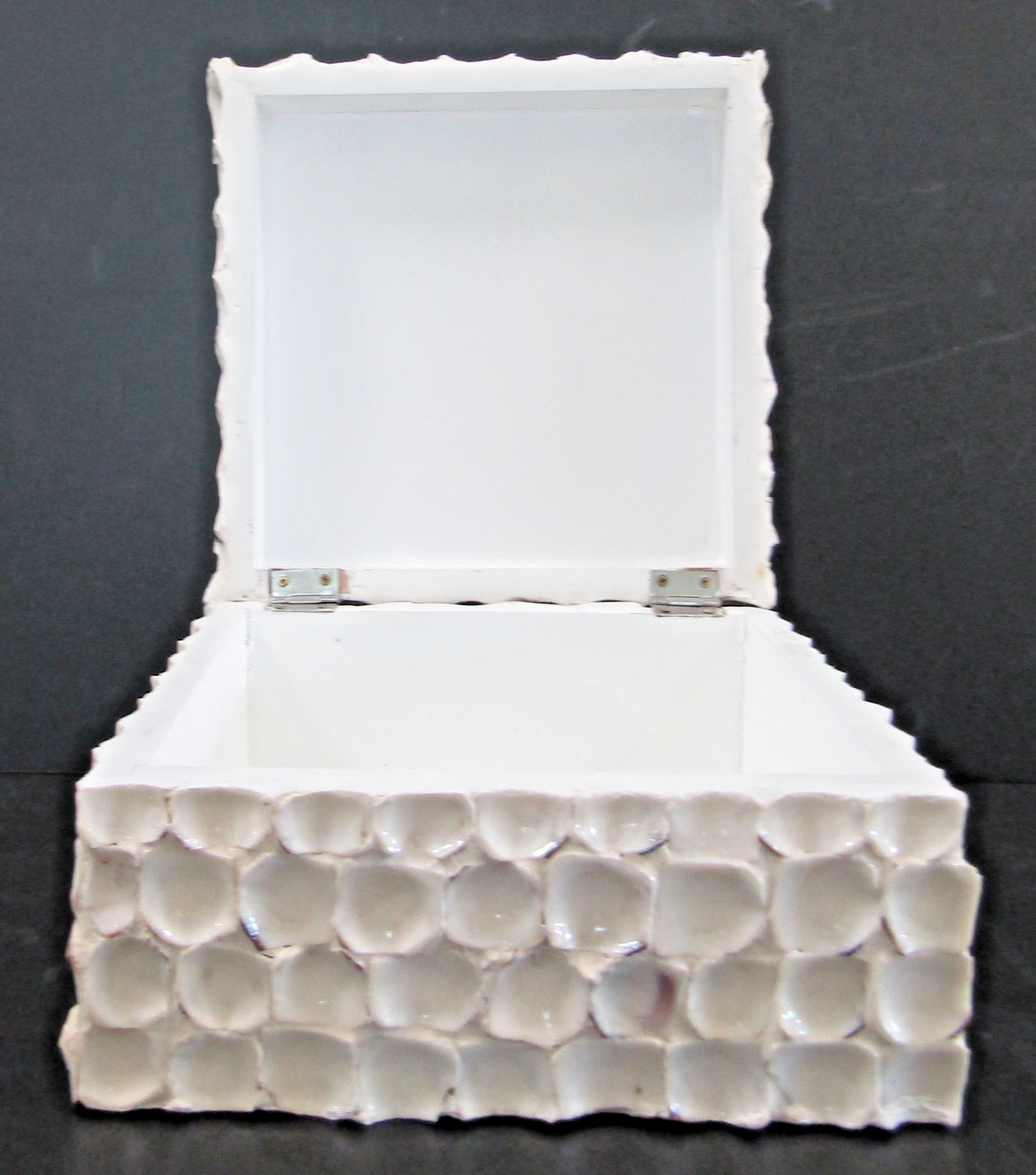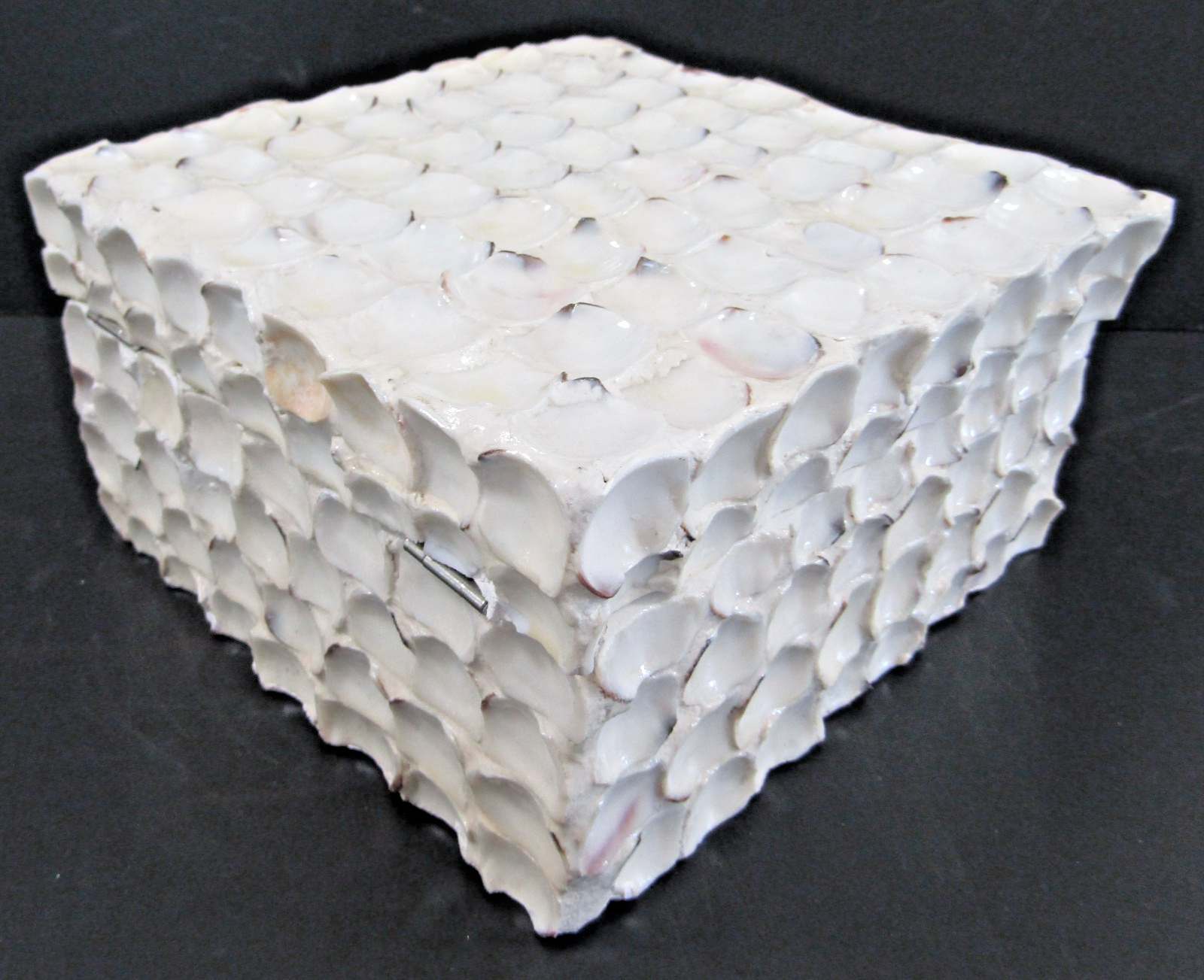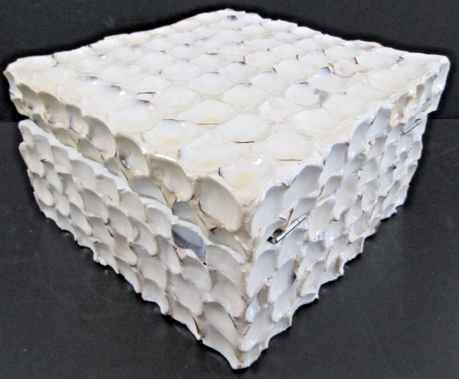 Hand Crafted Large Square White Barbuda Shell Hinged Box