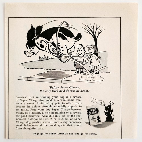 1953 Super Charge Dog Treats Goodies Advertisement Pet Food Snacks E91B