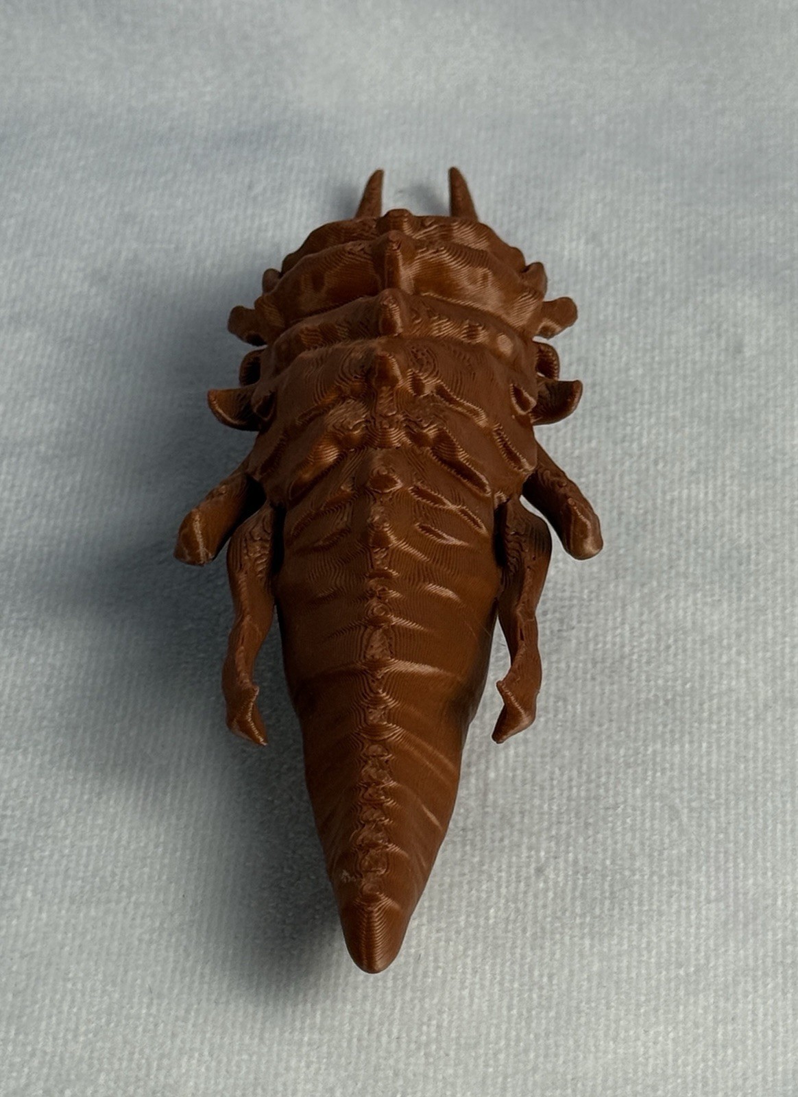 Estate sale find, sold as is, Measures about 6 inches long, brown with multicolored eyes, this thing is cool, see the photos see all the photos, probably 3-D printed, looks really nice, see the photos, minor lines, marks, and rough spots, as pictured, condition as pictured, see the photos, see all the photos, no cancellations or returns for any reason, ships within three business days.