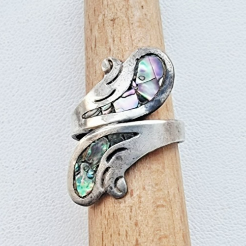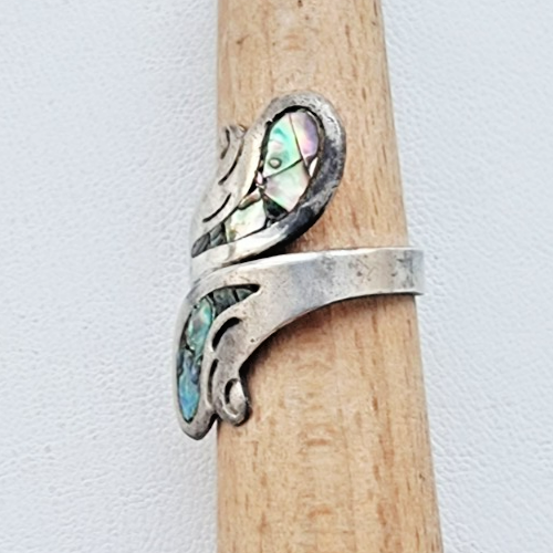 TAXCO MEXICAN 925 STERLING SILVER MOTHER OF PEARL ADJUSTABLE RING SIZE APPROX.6