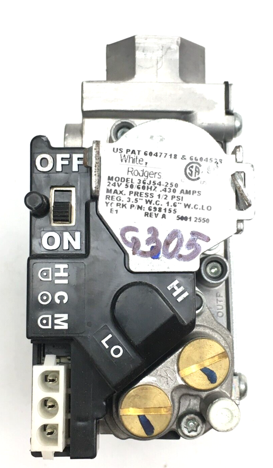 This is White Rodgers 36J54-250 GEMINI Furnace Gas Valve YORK 698155 inlet and outlet 1/2" used, bench tested, works well.