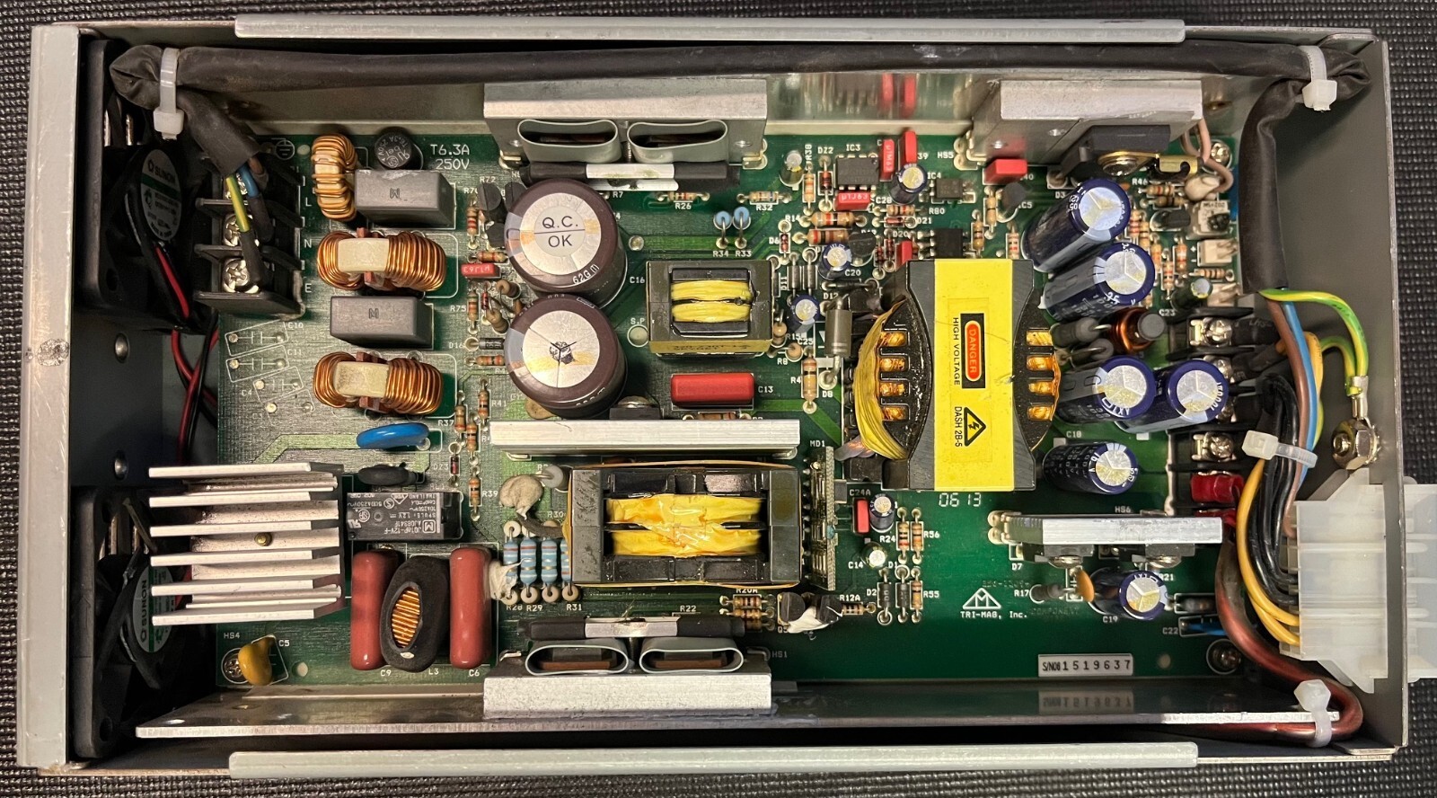 Tri-Mag DZ300-12EUFV3 300W enclosed AC-DC switching power supply, designed to deliver stable 24V DC (15A) and 5V DC (2A) outputs. Commonly used in industrial and gaming systems such as slot machine platforms (Aristocrat, IGT, WMS, etc.). This unit is used and untested, ideal for refurbishment, spares, or parts recovery.