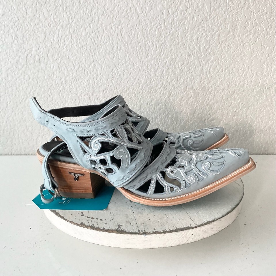 Lane SHALEY Robin Mule Blue Cowboy Boots Womens 12 Cowgirl Western Short Ankle
