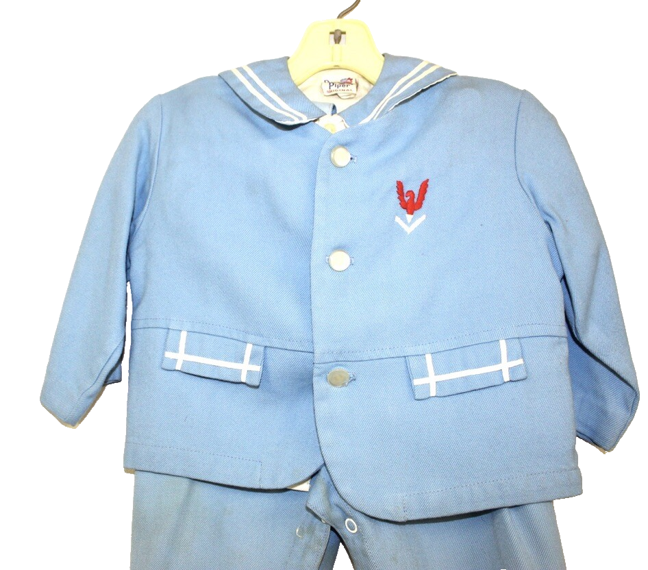 VTG 50s Peter Piper Baby Boy Sailor Romper & Blouse Outfit Embroidered Eagle XL