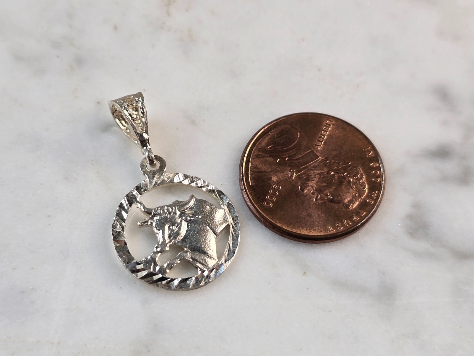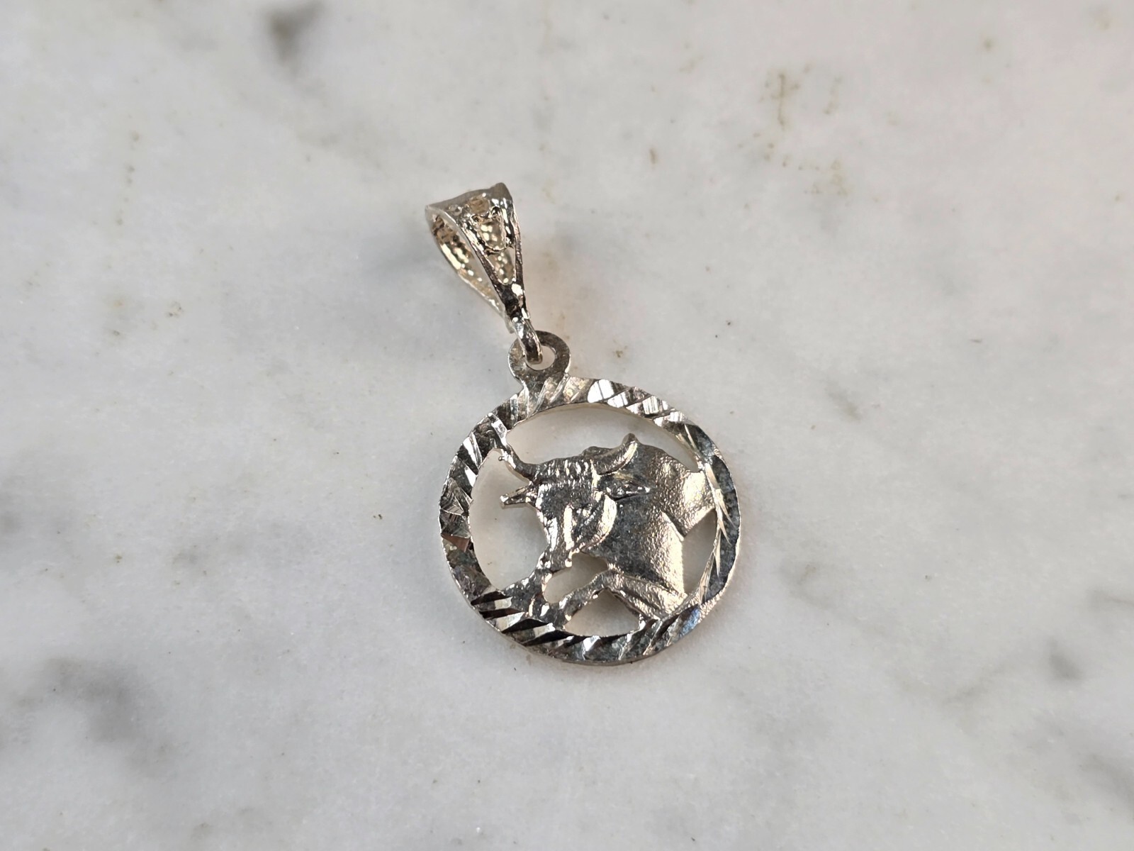 Womens Vintage Estate Sterling Silver Zodiac Taurus Pendant 1.2g E7692