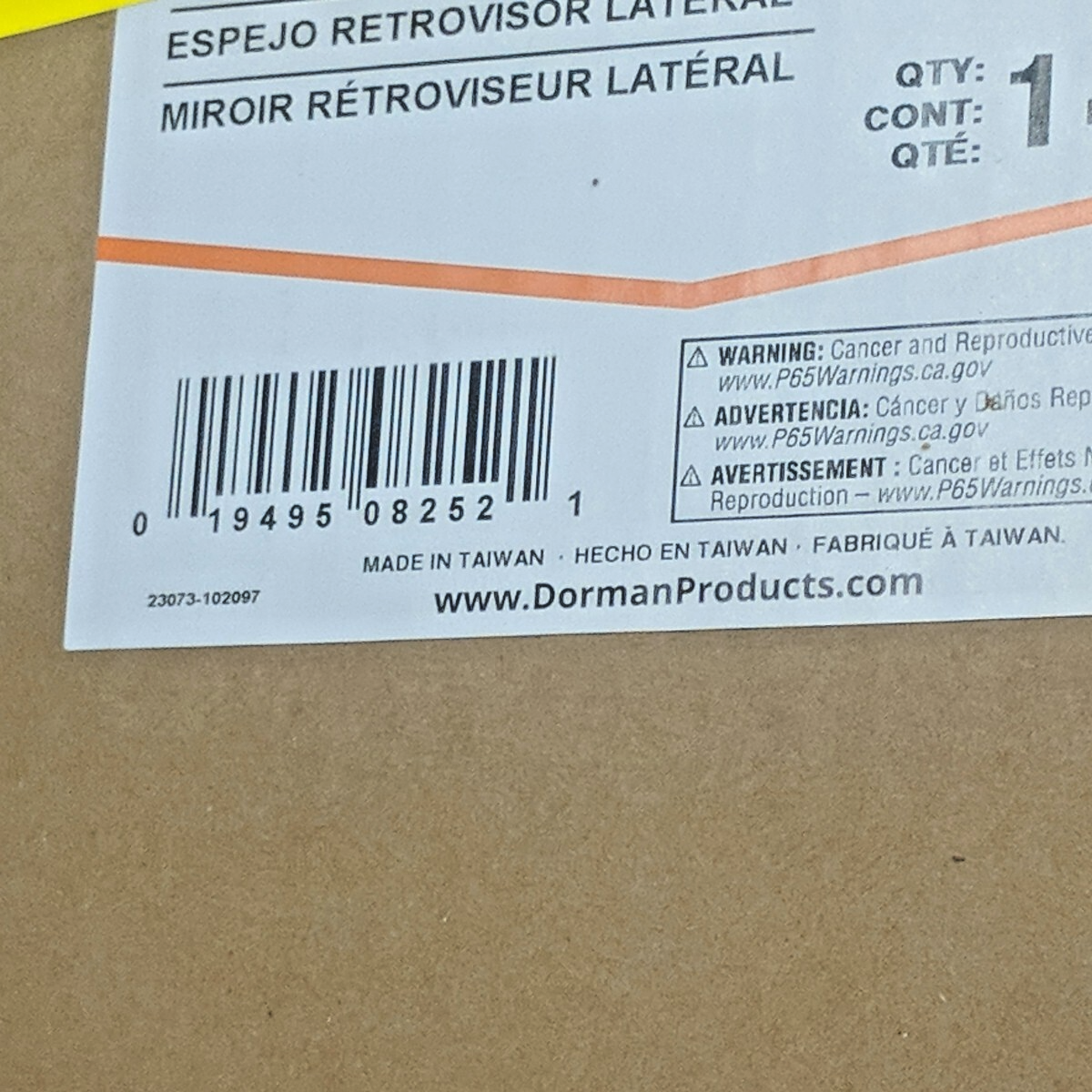 This product is manufactured in Taiwan and is not suitable for universal fitment. It comes with a California Prop 65 warning, cautioning the use of Butadiene chemicals that are known to cause cancer and birth defects. The package includes one mirror assembly with a height of 9 inches, width of 13 inches, and length of 7 inches. Buy this high-quality mirror assembly from Dorman and enjoy an improved driving experience.