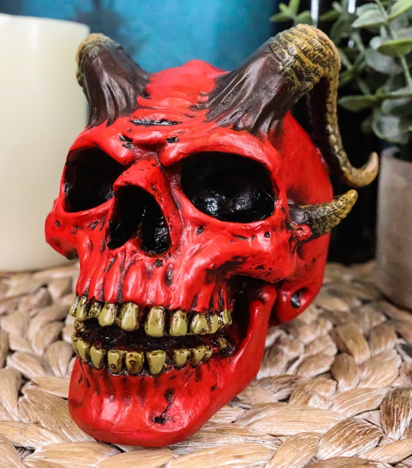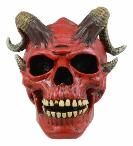 ? This El Diablo Horned Devil Skull figurine is made of high quality polyresin. It is meticulously hand painted and polished. Color tone may vary from pictures.
