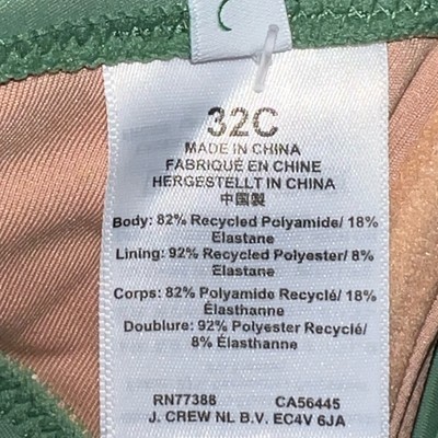 The J.CREW Balconette Underwire Bikini Top in Size 32C is a stylish and practical swimwear option for women. Made from a blend of polyester, spandex, and polyamide, this top features an adjustable strap and underwire support for a comfortable and flattering fit. The rustic willow green color adds a pop of color to your beach or poolside look, while the classic bikini style and solid pattern make it a versatile choice for any summer wardrobe.