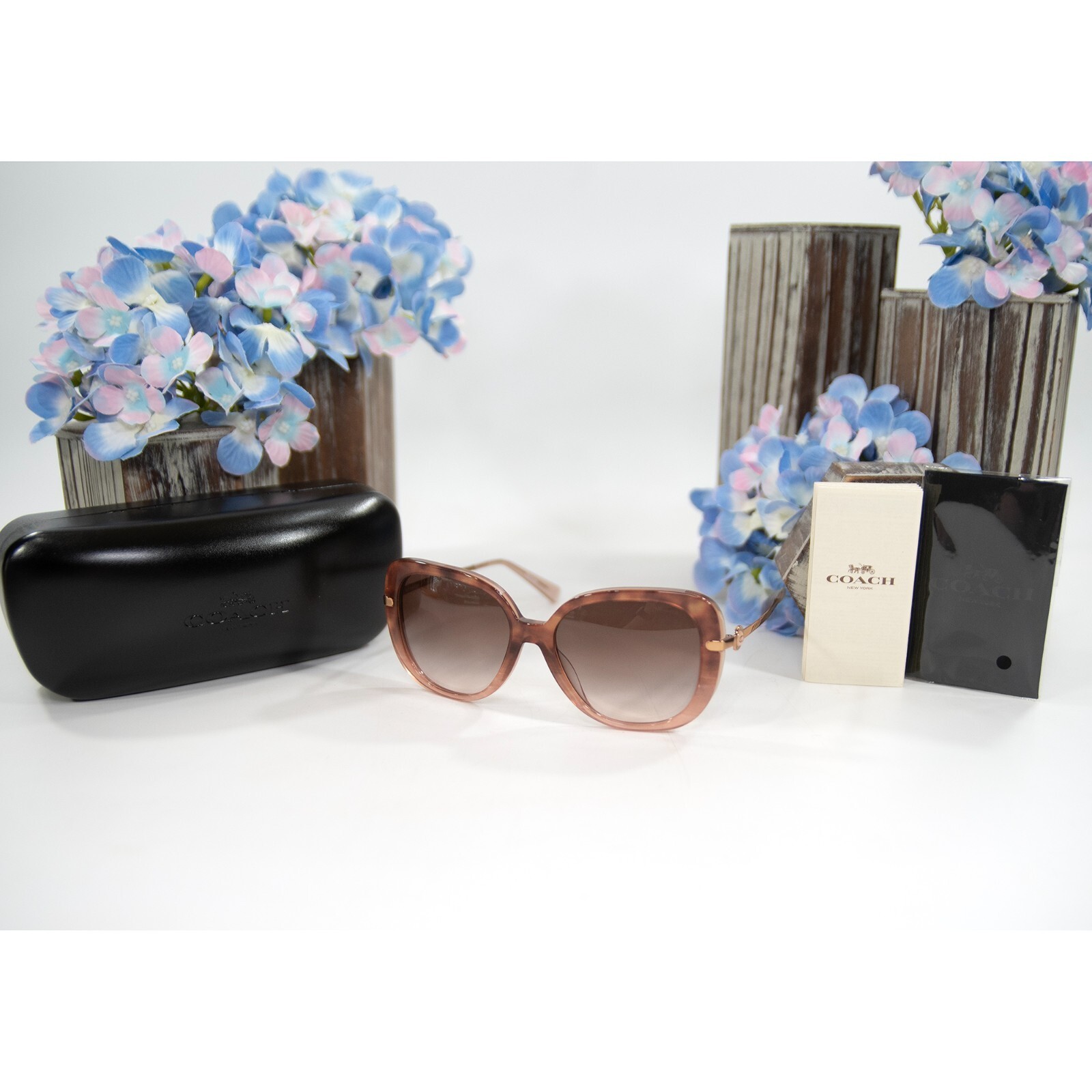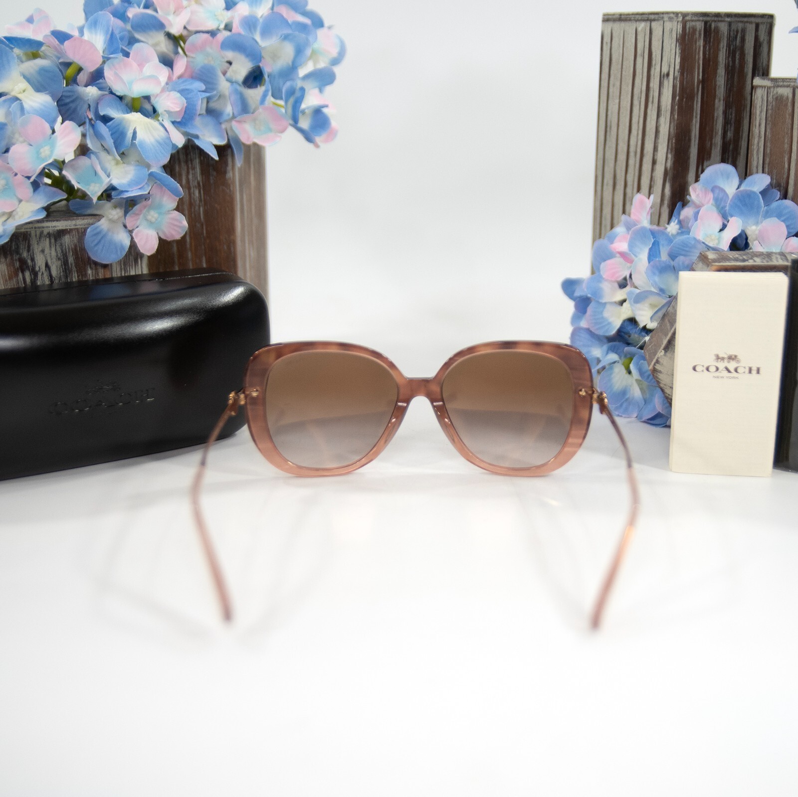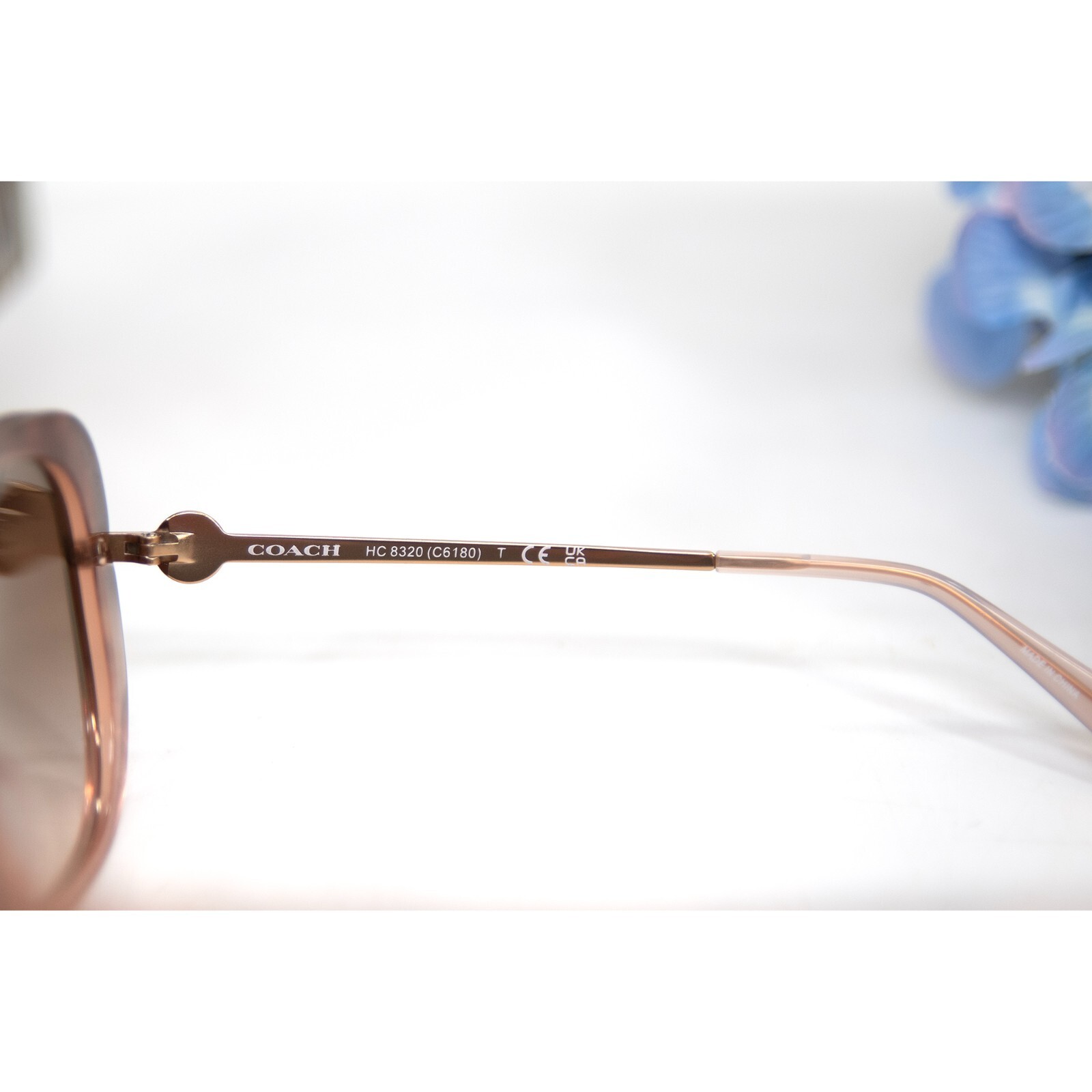 Coach OHC8320 Peach Tortoise Acrylic Metal Logo Sunglasses NWT Case