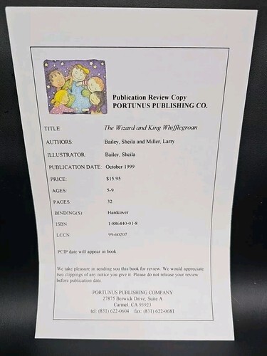 UP FOR SALE: The Wizard and King Whifflegroan Hardcover ? August 1, 1999 by Sheila Bailey (Author), Larry Miller (Author), Sheila Miller (Author)