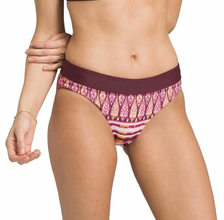 prAna Ramba Size Small (S) Hipster Mid Rise Bikini Bottoms Black Cherry Izabal