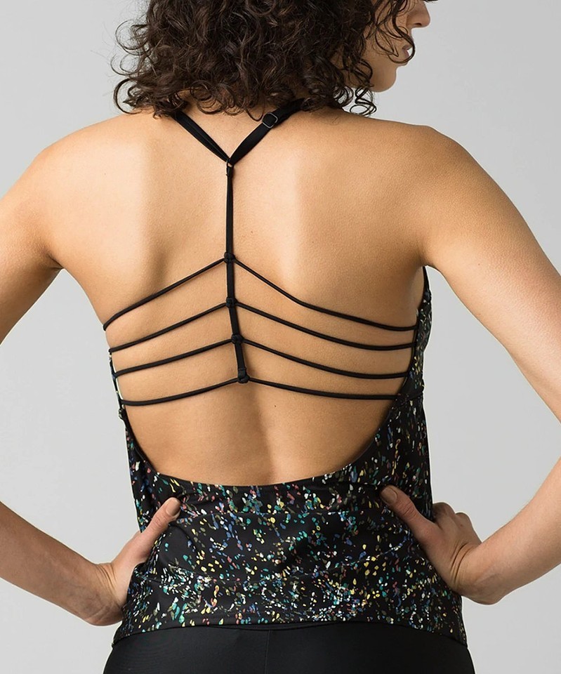 prAna Margot Size Small (S) Multi-Strap Scoop Neck Tankini Top Black Stargazer W11201927
