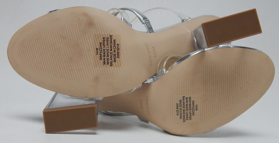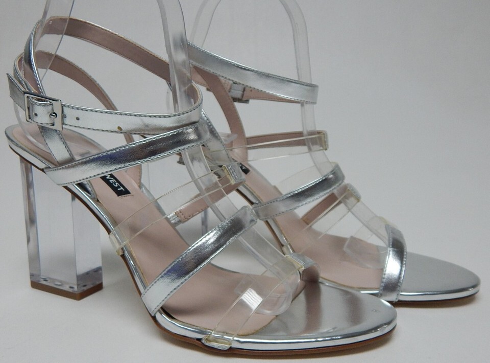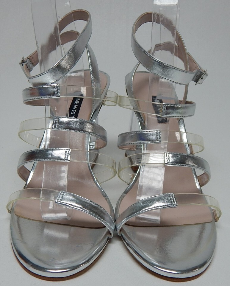 Nine West Fazzani Size US 10.5 M Women's High Block Heel Strappy Sandals Silver