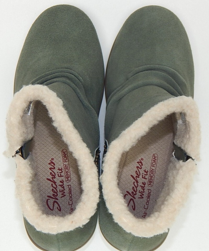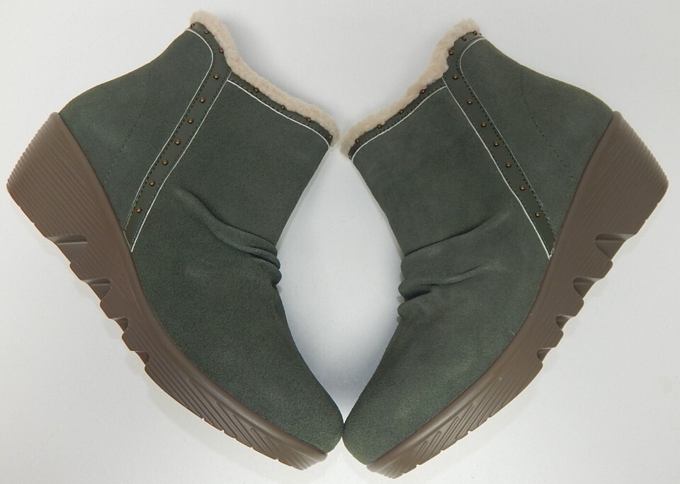 Skechers Jumper Sweet Stud Sz US 8.5 W WIDE EU 38.5 Women's Suede Booties Olive