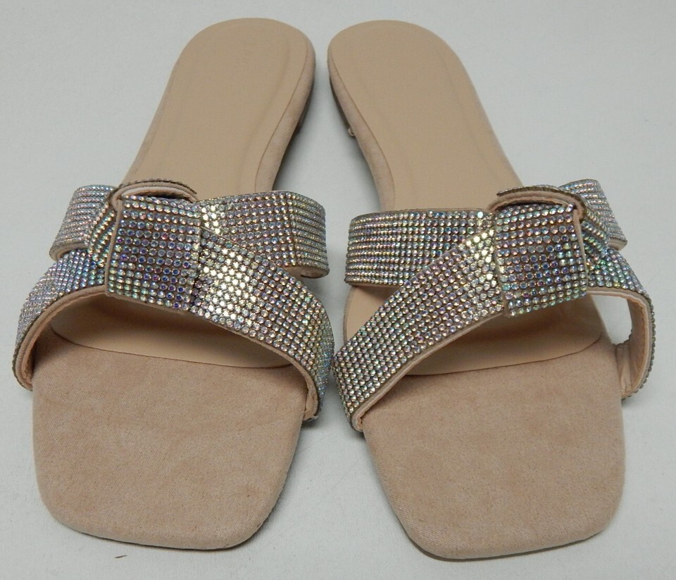Bamboo Kick-38 Size 10 M EU 40 Women's Crisscross Rhinestone Strap Slide Sandals