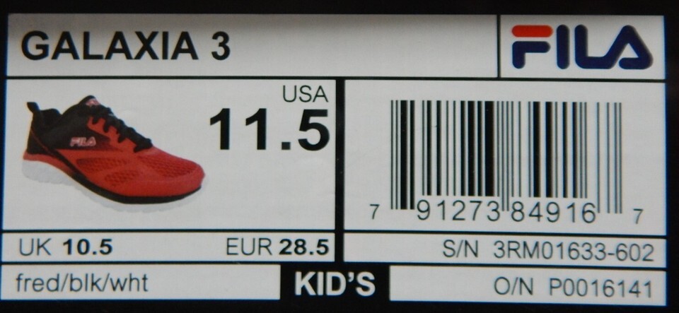 Fila Galaxia 3 Sz US 11.5 M (Y) EU 28.5 Little Kids Boys Girls Running Shoes Red