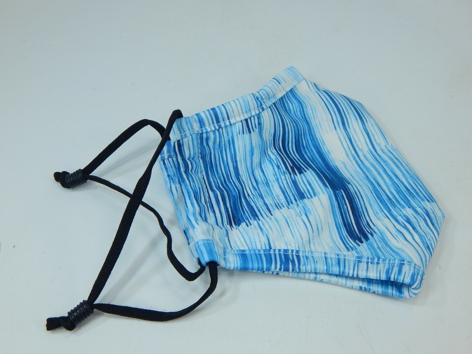 Simplicity Fabric Mask Adjustable Strap Metal Nose Bridge Breathable Blue /White