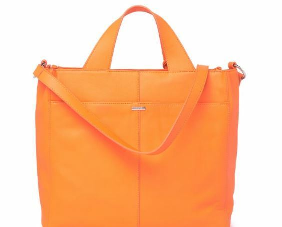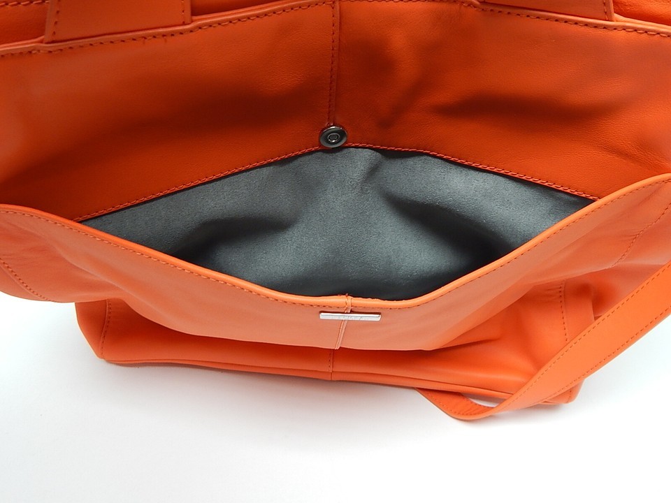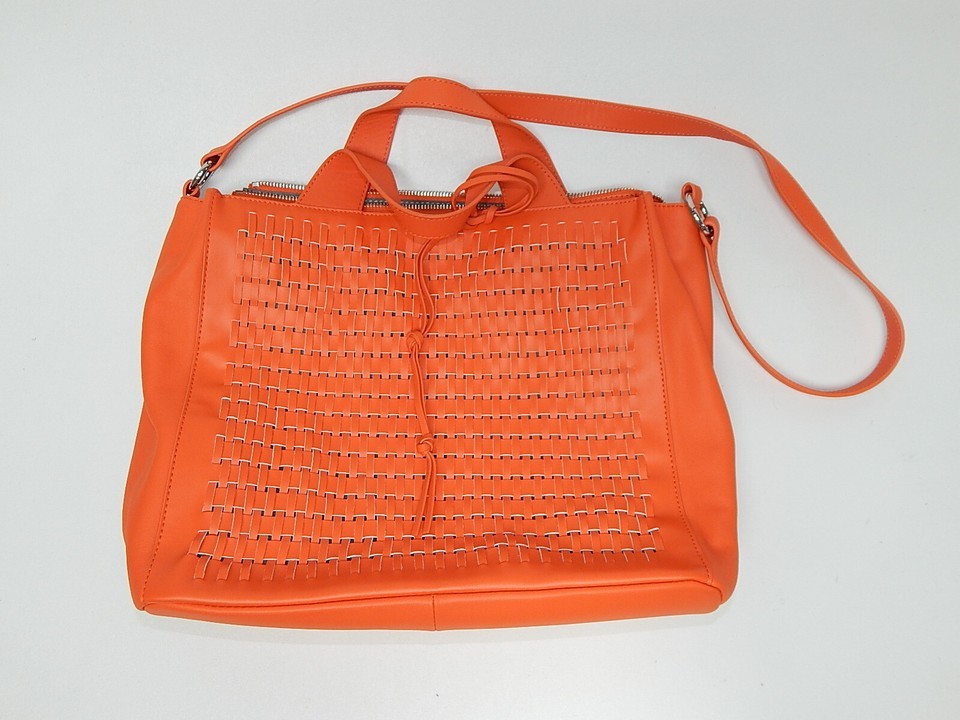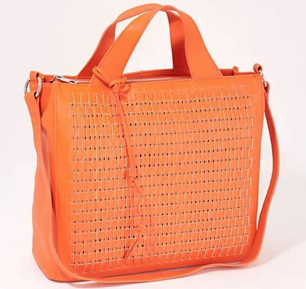 Vince Camuto Remy Woven Leather Shoulder Strap Zip Snap Tote Bag Monarch Orange