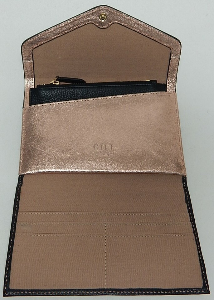 G.I.L.I. Pisa Women's Leather Wallet Flap Entry Snap Closure Black