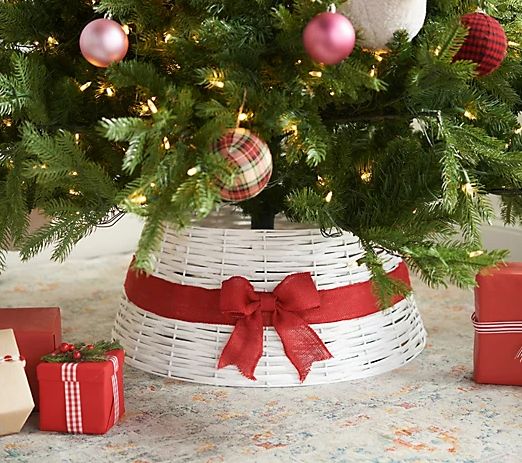 Valerie Parr Hill Christmas Tree Collar Stand Basket Weave w Ribbon Indoor Decor