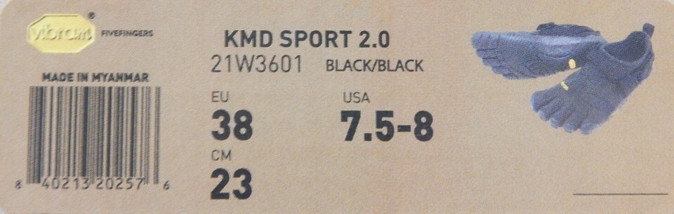 Vibram FiveFingers KMD Sport 2.0 Size US 7.5-8 M EU 38 Women's Running Shoes Black / Black 21W3601