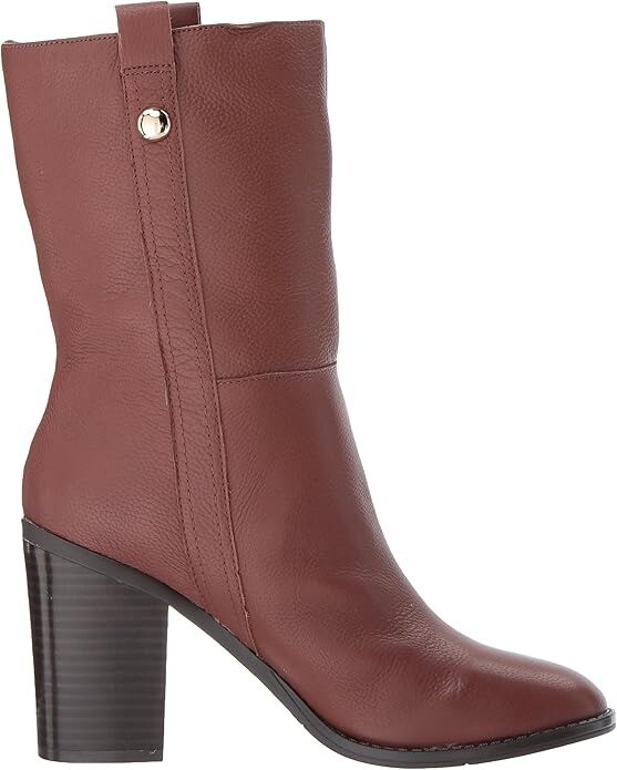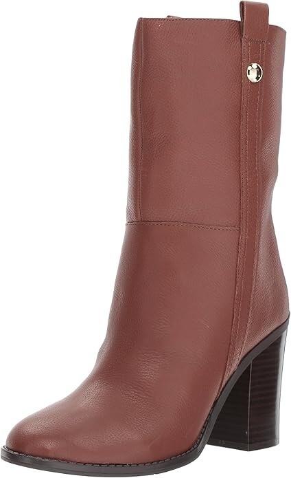 Nine West Howl Size US 10 M Women's Leather Block Heeled Mid Calf Boots Cognac