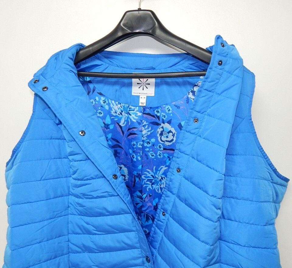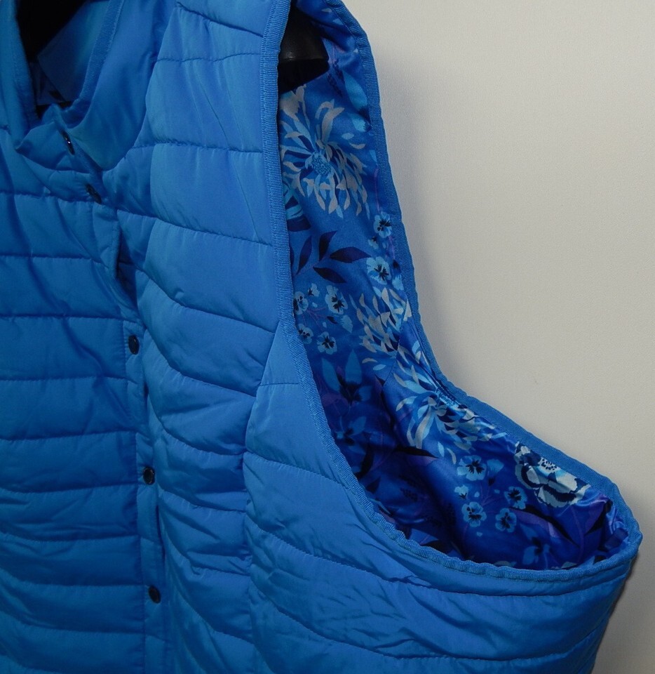 Isaac Mizrahi Live! Plus Size 5X Women's Vest Puffer Jacket Snap Front Printed Lining Quilt Blue