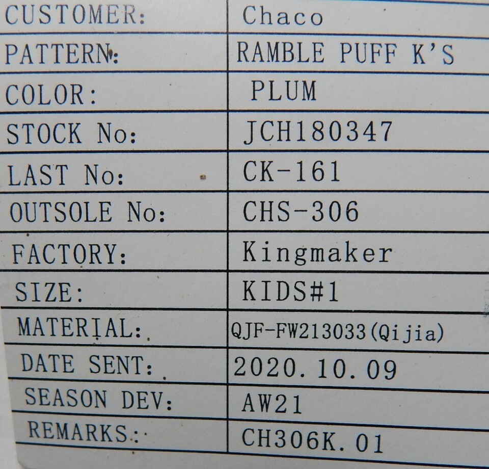 Chaco Ramble Puff Size US 1 M EU 32 Big Kids Boys Girls Booties Plum JCH180347