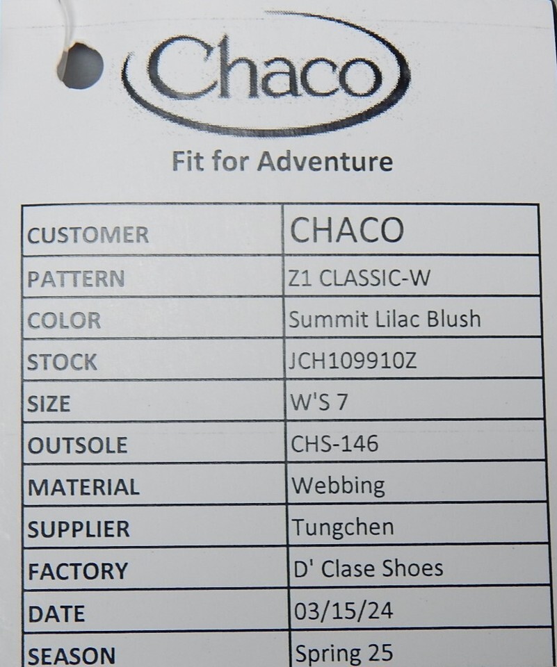 Chaco Z/1 Classic Sz US 7 M EU 38 Women's Sandals Summit Lilac Blush JCH109910Z