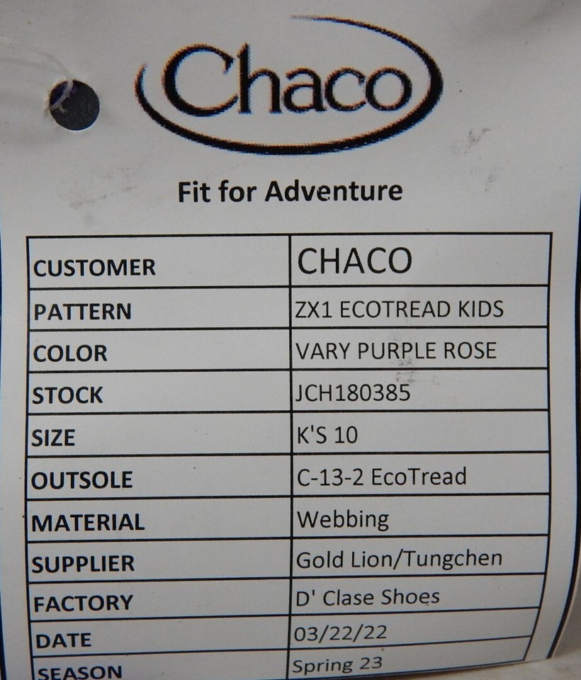 Chaco ZX/1 EcoTread Sz US 10 M (Y) EU 28 Kids Sandals Vary Purple Rose JCH180385