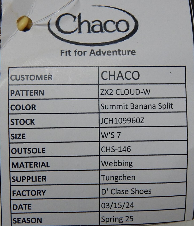Chaco ZX/2 Cloud Sz US 7 M EU 38 Women's Sandals Summit Banana Split JCH109960Z