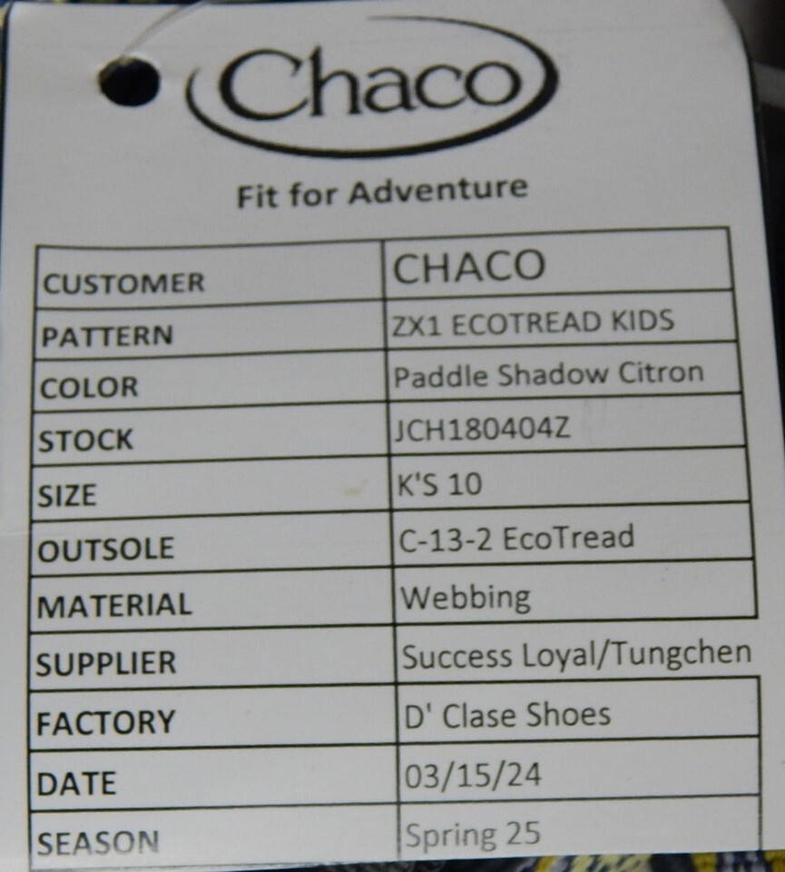 Chaco ZX/1 EcoTread Sz 10 M (Y) EU 28 Kid Sandal Paddle Shadow Citron JCH180404Z