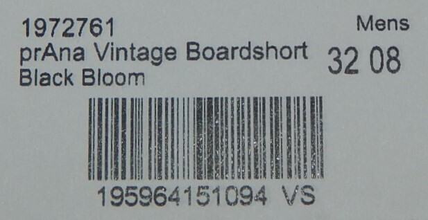 prAna Vintage Size 32 Men's Beach Boardshort Swim Trunks Shorts 8"L Black Bloom