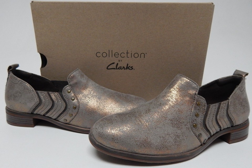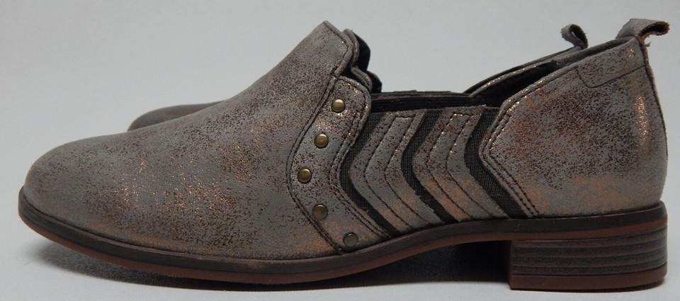 Clarks Trish Bell Sz 7 M EU 37.5 Women's Studded Slip-On Shoes Shooties Gunmetal