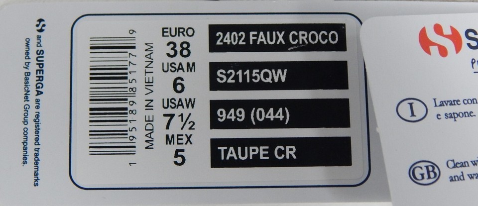 Superga 2402 FAUX CROCO Size US 7.5 M EU 38 Women's Slip-On Shoes Taupe S2115QW