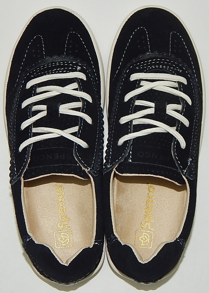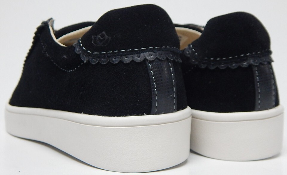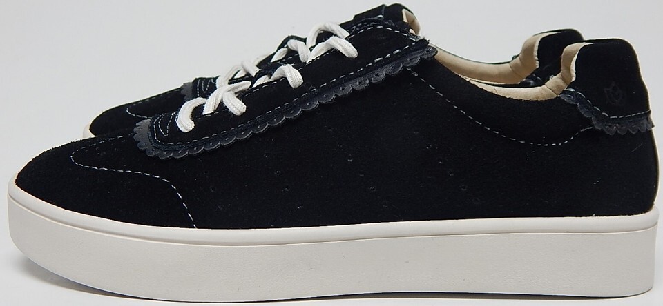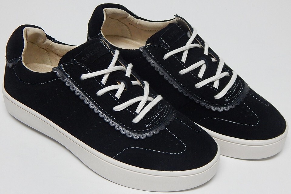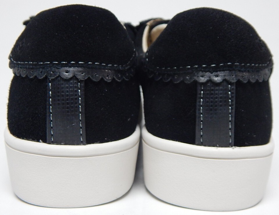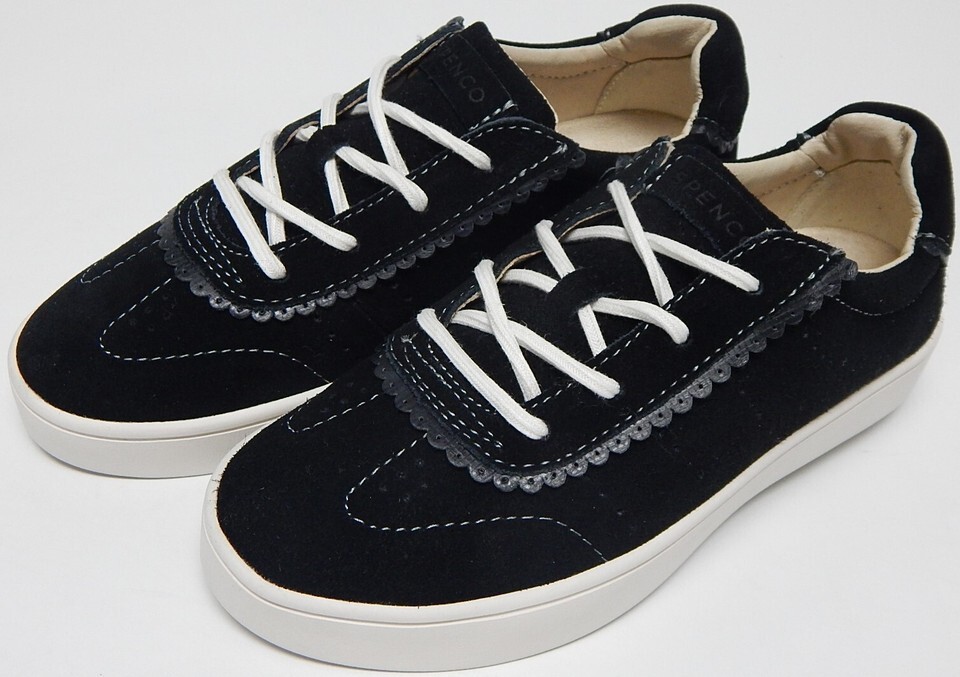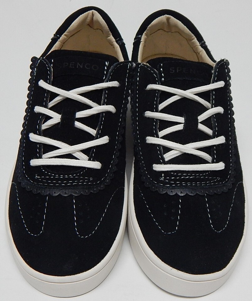 Spenco Camden Sz 6 W WIDE EU 36 Women's Suede Shoes Scalloped Trim Sneaker Black