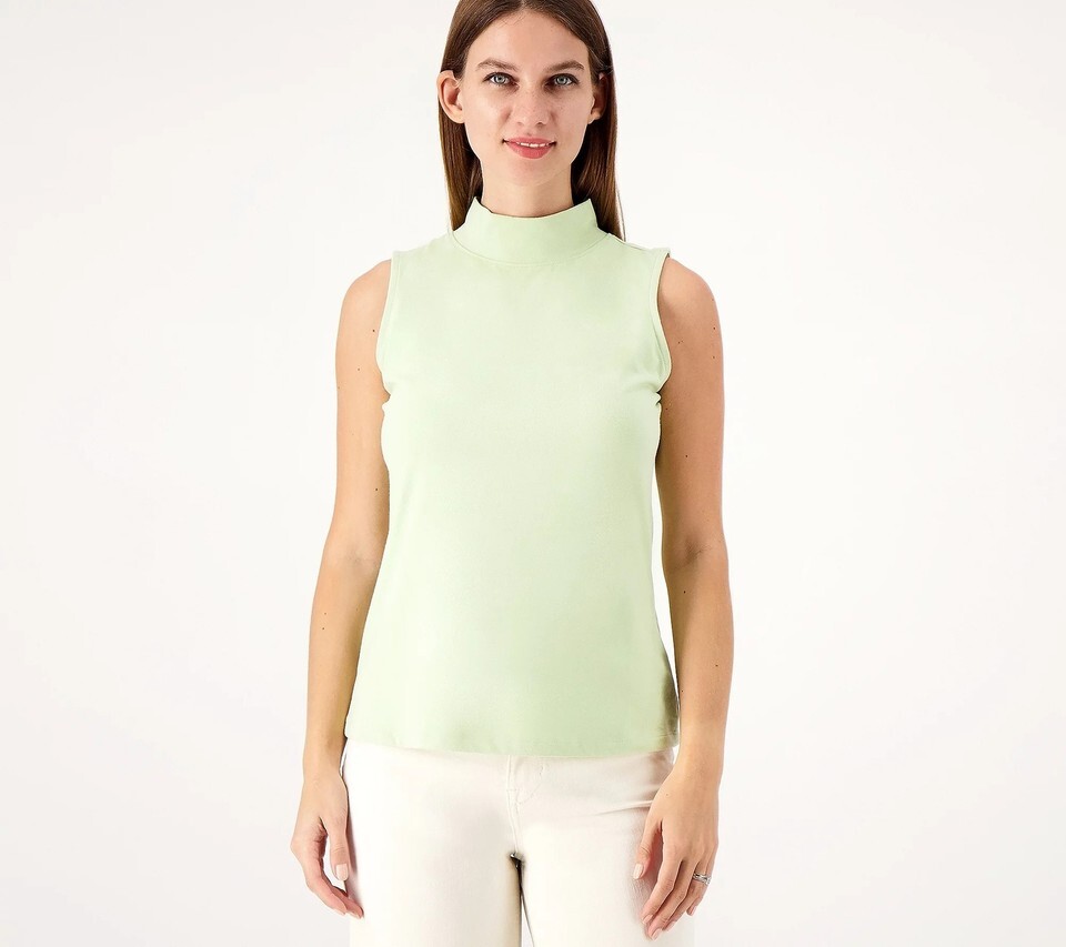 Denim & Co Essentials Sz L (Large) Womens Mock Neck Tank Top & Cardigan Set Sage