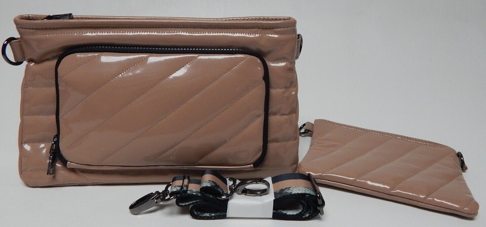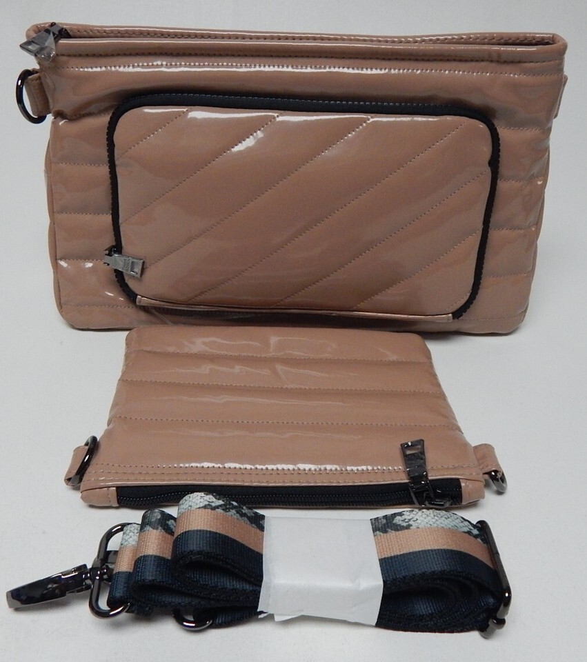 Think Royln Bank Street XL Quilted Crossbody Shoulder Bag with Pouch Nude Patent
