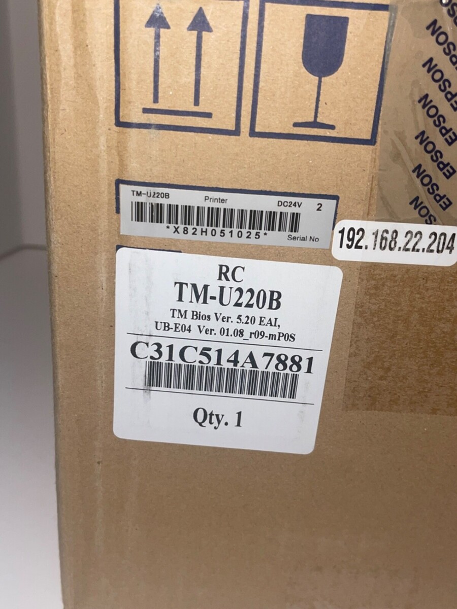 New open box. Ethernet interface (E04SAE05) Auto paper included. This is the newest model the Epson TM-U220B (767) Model Some are in the rectangular box and some are in the square box.