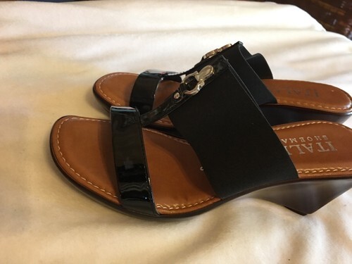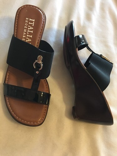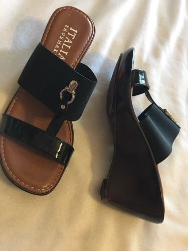 Italian Shoemakers QUIZ Wedge Sandal Shoe Black SZ 9.5 NEW