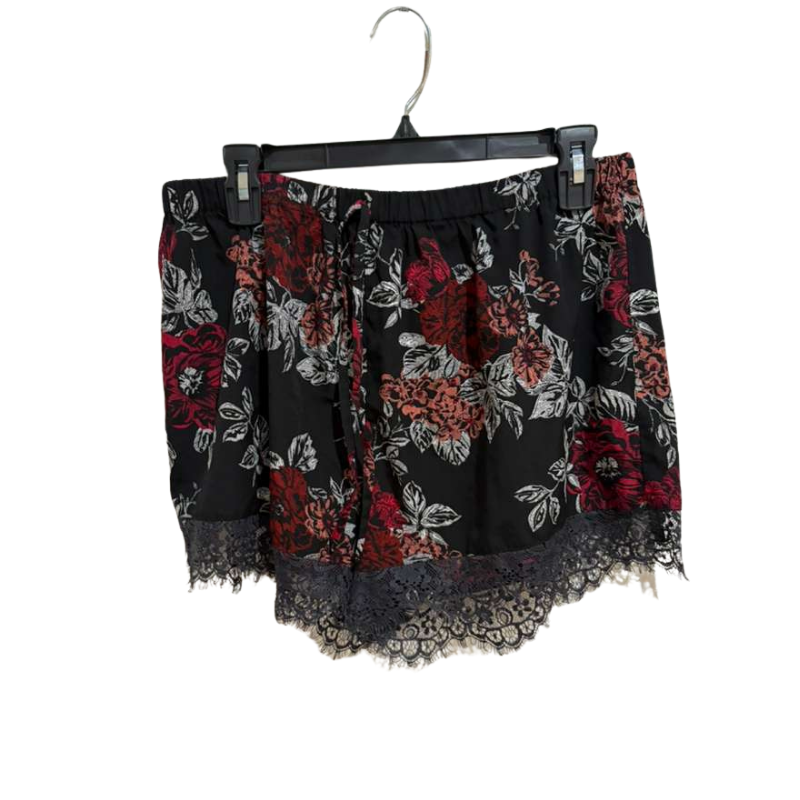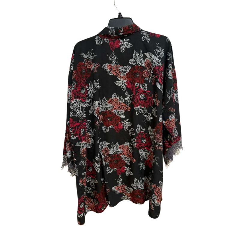 Papna Lounge Women’s Floral Robe & Shorts Set XL Black Red Lace Trim