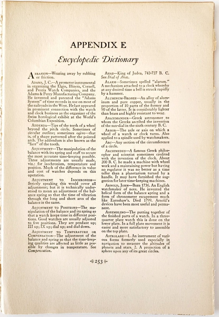1919 Encyclopedic Dictionary Watches Clocks And Time Appendix Booklet E2G