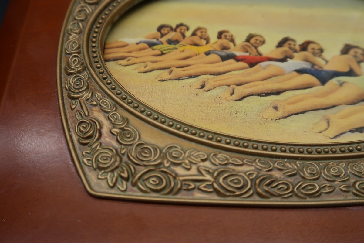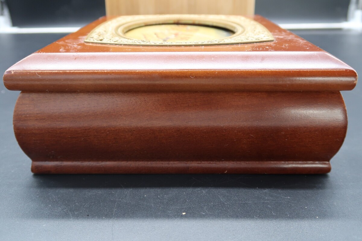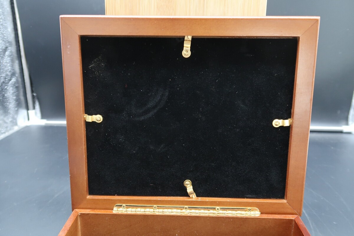 Vintage Dresser Trinket Jewelry Wood and Brass Box Picture Photo Slot