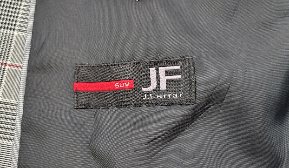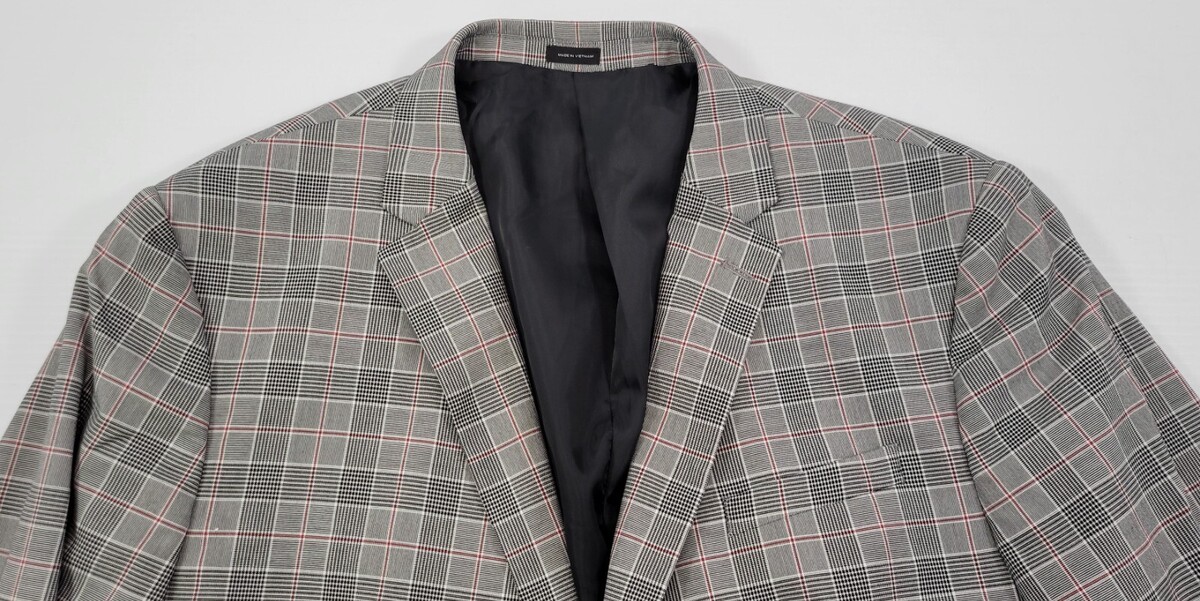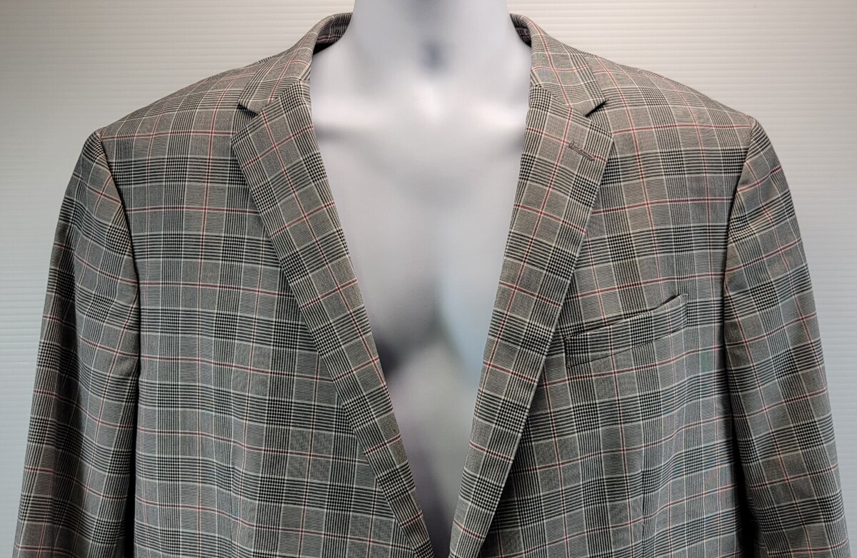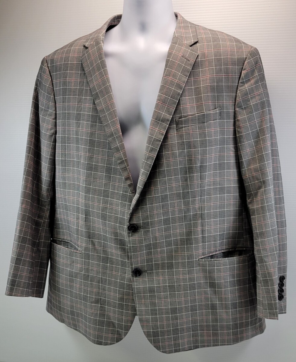 QQ) J Ferrar Men Slim Plaid Pattern Gray Blazer Suit Jacket XL 46-48 Regular