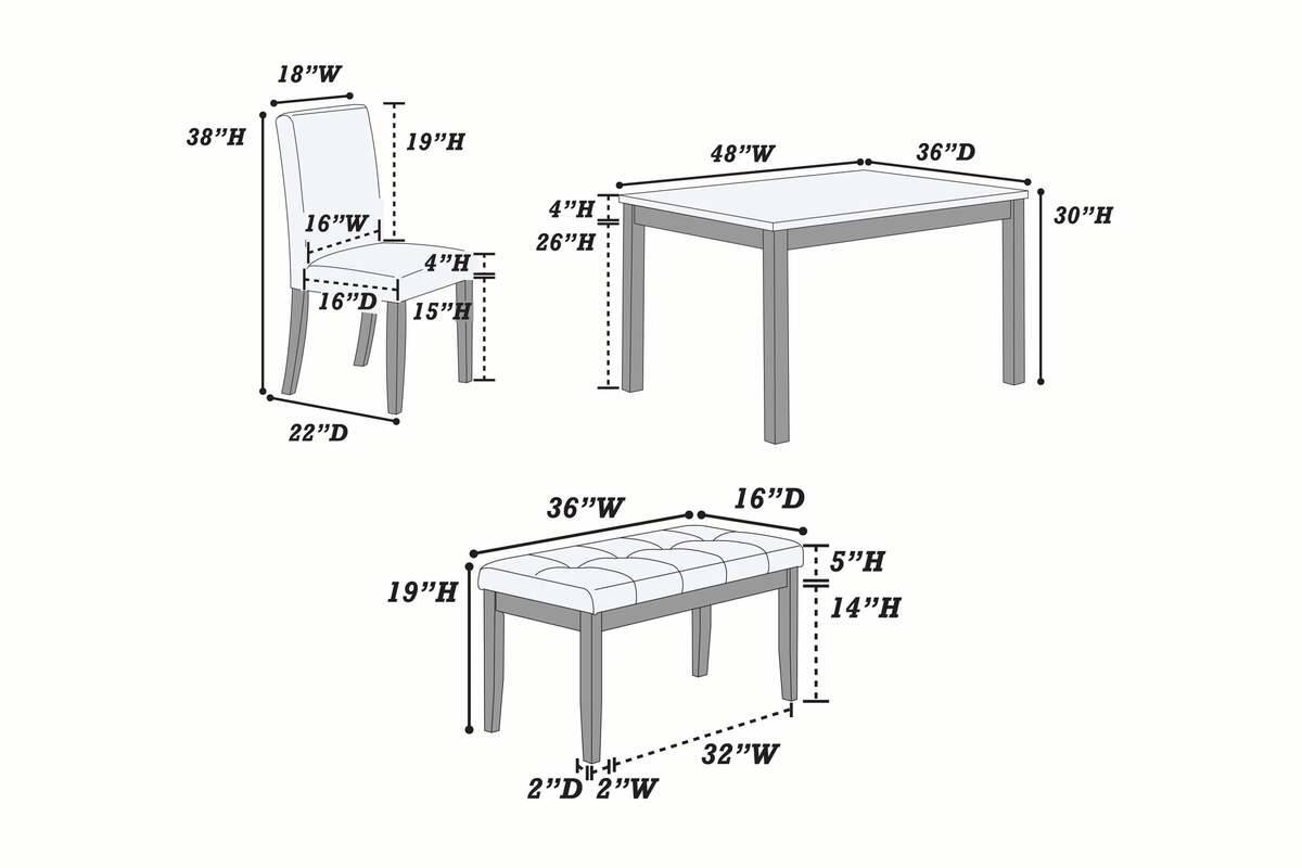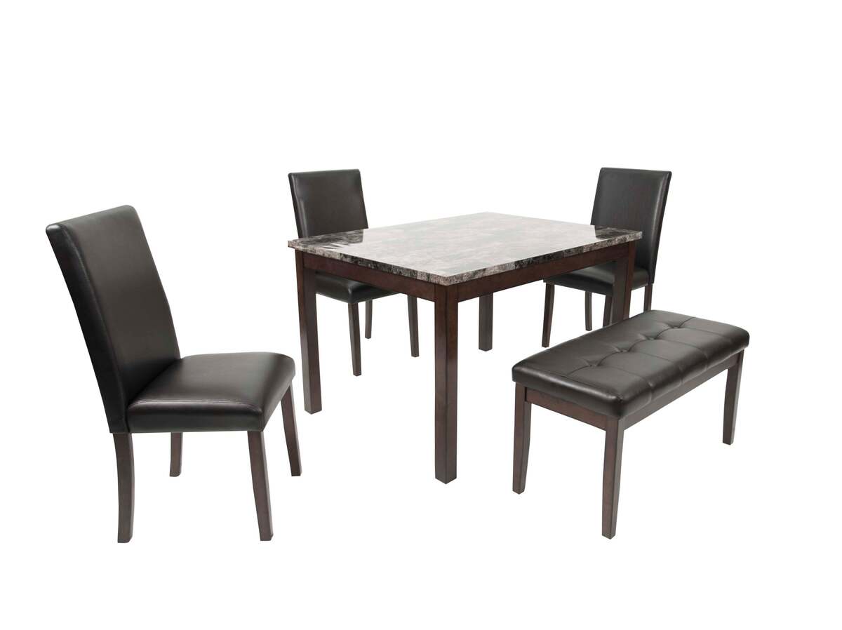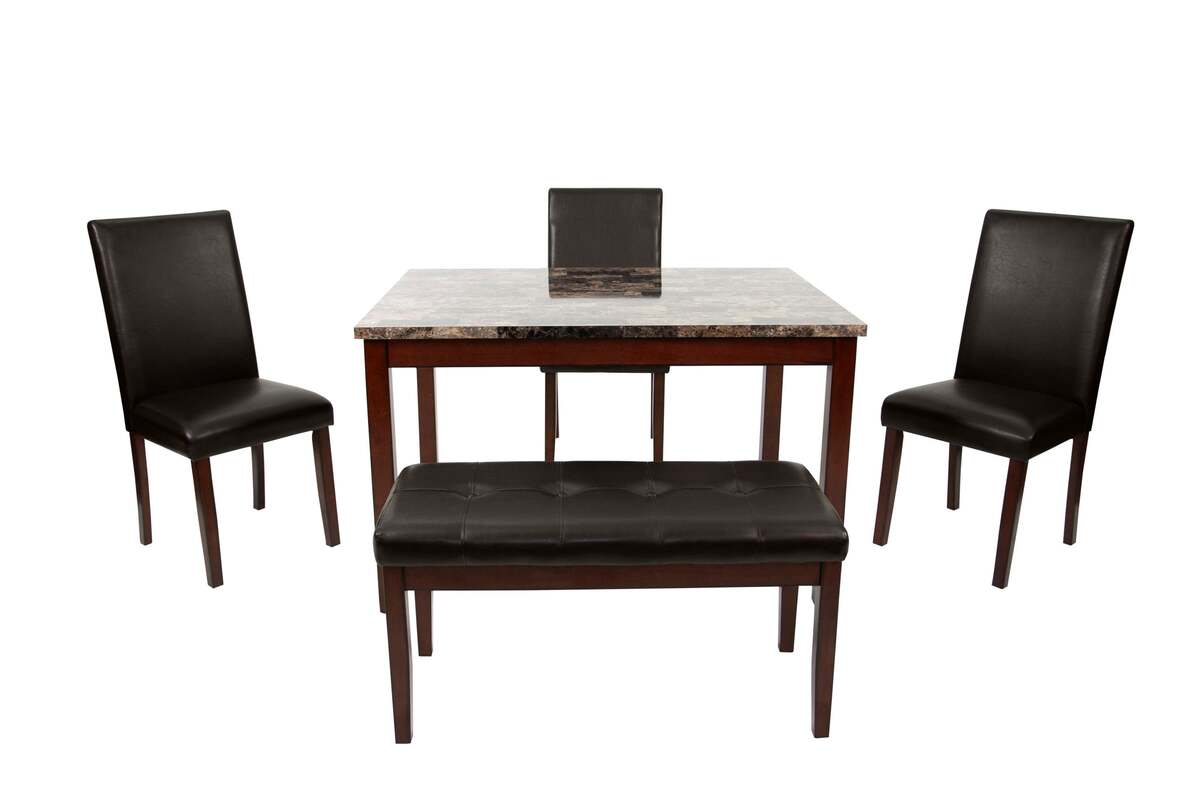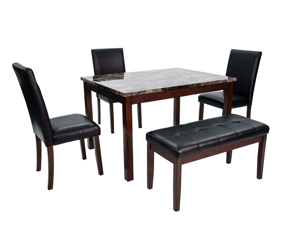Place of Origin Viet Nam Main Color Espresso Main Material Faux Leather,Rubber Wood Filler Foam Product Style Modern Use Case Primary Living Space Chair Back Types Solid Back Desk Shape Square Wood Type Rubberwood Wood Tone Brown Seating Capacity Seats 4 Table Shape Rectangular Table Lengths 48 inches Table Top Material Faux Marble Chair Material Upholstered Chair Table Frame Material Wood Table Base Types 4 Leg Dining Set Configuration Dining Table with Chair and Bench Dining Sets Features Bench Seating Dangerous Goods #dangerFlag#