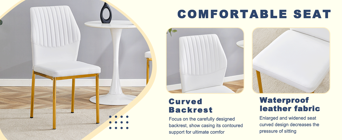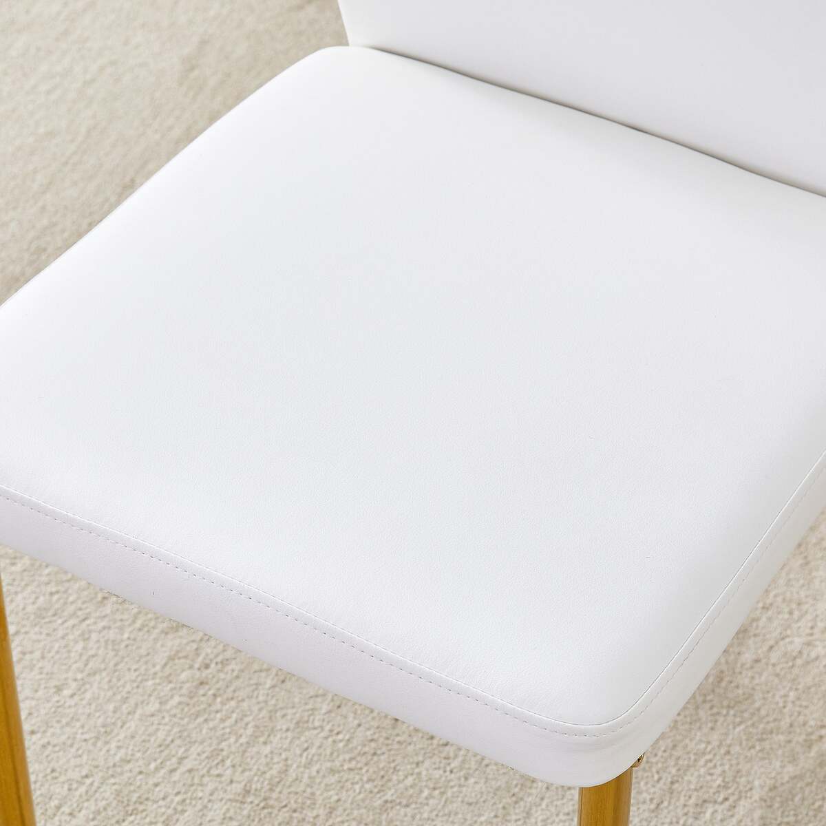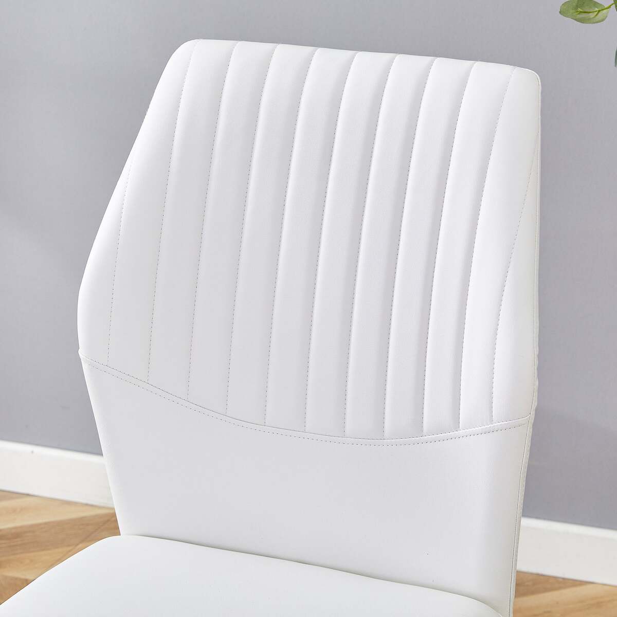 Material application: The backrest and seat cushion are made of white PU synthetic leather material, which has good wear resistance and faux leather texture, giving the chair a delicate appearance and easy daily cleaning and maintenance; Internally filled with high-density sponge to ensure a comfortable sitting experience and excellent resilience, effectively relieving the pressure of prolonged sitting.