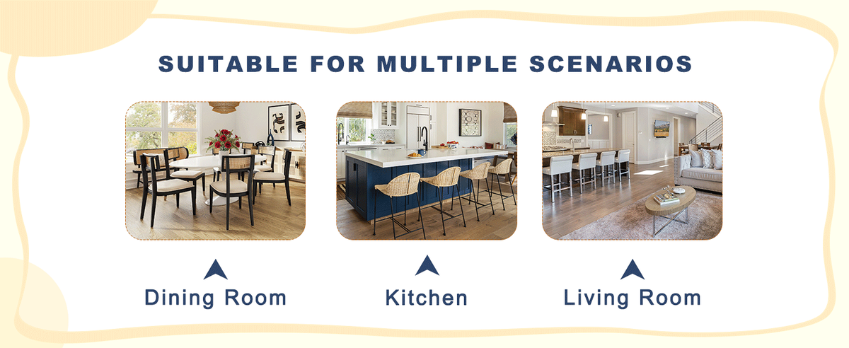 These chairs, with their modern design, comfortable seating experience, and versatility, are perfect for families or commercial places that pursue fashion and quality living. This classic color combination is suitable for various interior decoration styles and easy to blend into different environments.