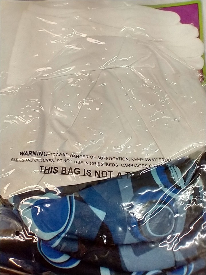 NOTE: Listing is for items listed as included only. Some accessories may be pictured but are not included. All are new in package. Costumes will have wrinkles / creases from being in package, please see care instructions before trying to iron, etc. A quick and easy way to help eliminate wrinkles is by using a spray bottle form of fabric wrinkle releaser (not included). New in package items may have long / loose threads or strings that may require trimming, these are not considered defects. For Costumes, please refer to chart in this listing as reference for estimating size, always choose a size larger if borderline. Individual results will vary. Please note everyone's body is made different and costumes may not fit as they fit the models in the photos. If you are unsure of the size you need or if your in between sizes, please choose the larger size. These are costumes and should fit comfortably. All sizing information is provided by manufacturer. NO RETURNS OR EXCHANGES ON COSTUMES. Some Features, Packaging, Colors and Texture may vary slightly. Manufacturer may change some Features, Packaging, Colors and Textures so actual costume may vary slightly from picture. Any known differences will be stated in description. Manufacturer's Photo. Sold as is New in Package. This item may ship in an envelope: folding and or removal of plastic hanger may be necessary.