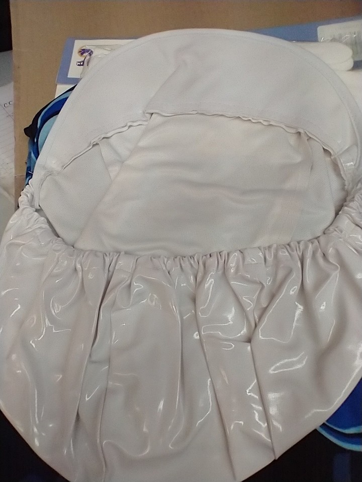 includes a pair of white gloves. Gloves are like a cotton type fabric not satin. These gloves are an accessory I added and not part of the original costume.